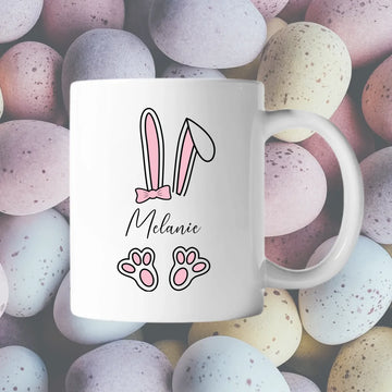 Gør hver en kop lidt hyggeligere med dette charmerende keramik-krus, dekoreret med yndigt påskeharer print og dit eget navn. Perfekt til at skabe skønne påskestunder og hyggelige øjeblikke året rundt!